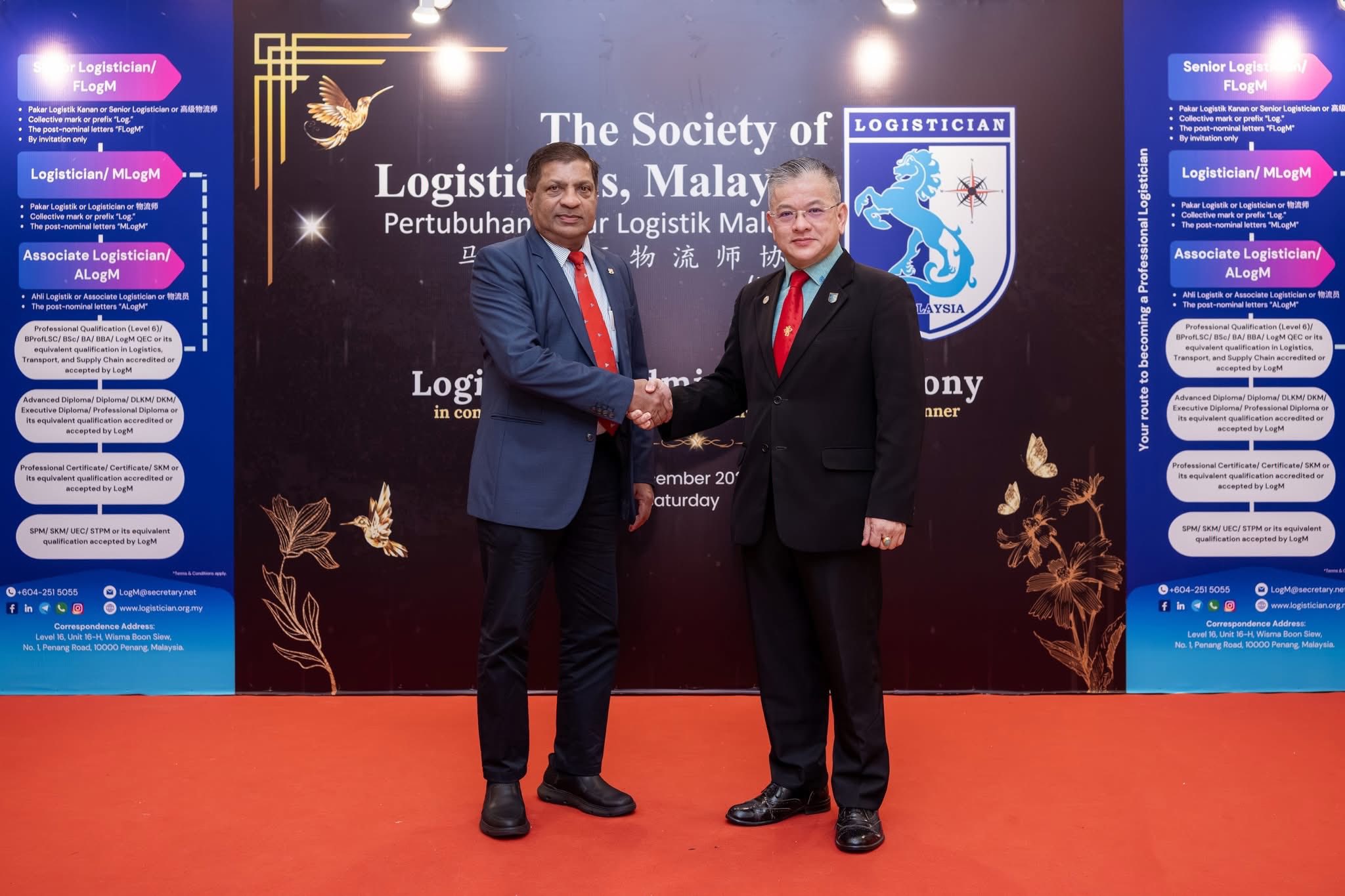 Our Capt. Log. Ananda Kumar, FCILT, FLogM, who's also LogM Honorary President, was invited to attend and grace the LogM Logistician Admission Ceremony and LogM Anniversary Celebration Dinner, which took place at Gurney Bay Hotel on 6 December 2025 (Saturday).